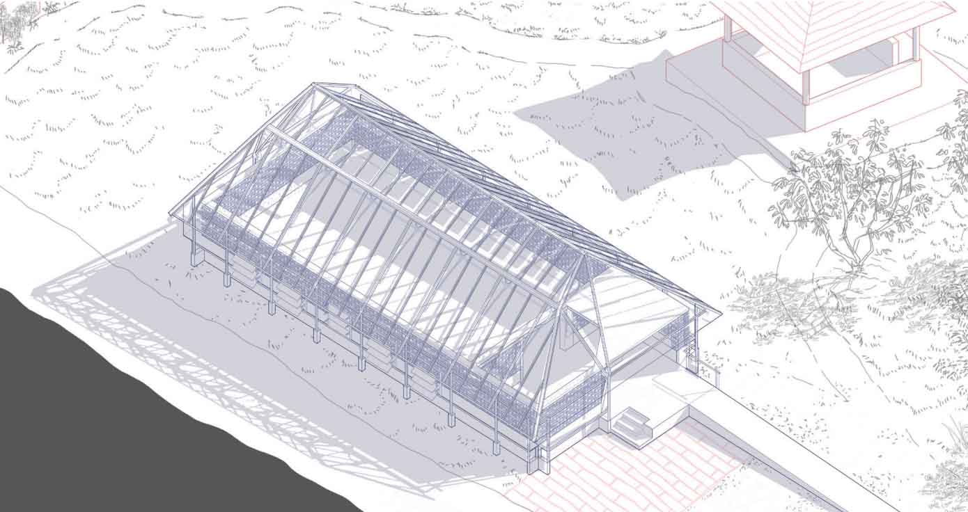 Designed alongside a family-owned farm where cocoa is grown and processed to create handmade chocolate, this project includes a dehydrator unit for moisture control of the cocoa and a chocolate production unit. The production facility incorporates traditional practices, featuring a shallow dome and lime plastering. Adjacent to the chocolate factory, a residential unit is designed to accommodate volunteers working at the factory. The layout of the project aimed to effectively utilize the site's expanse, strategically scattering the various units to optimize convenience and practical functionality in the workflow.
